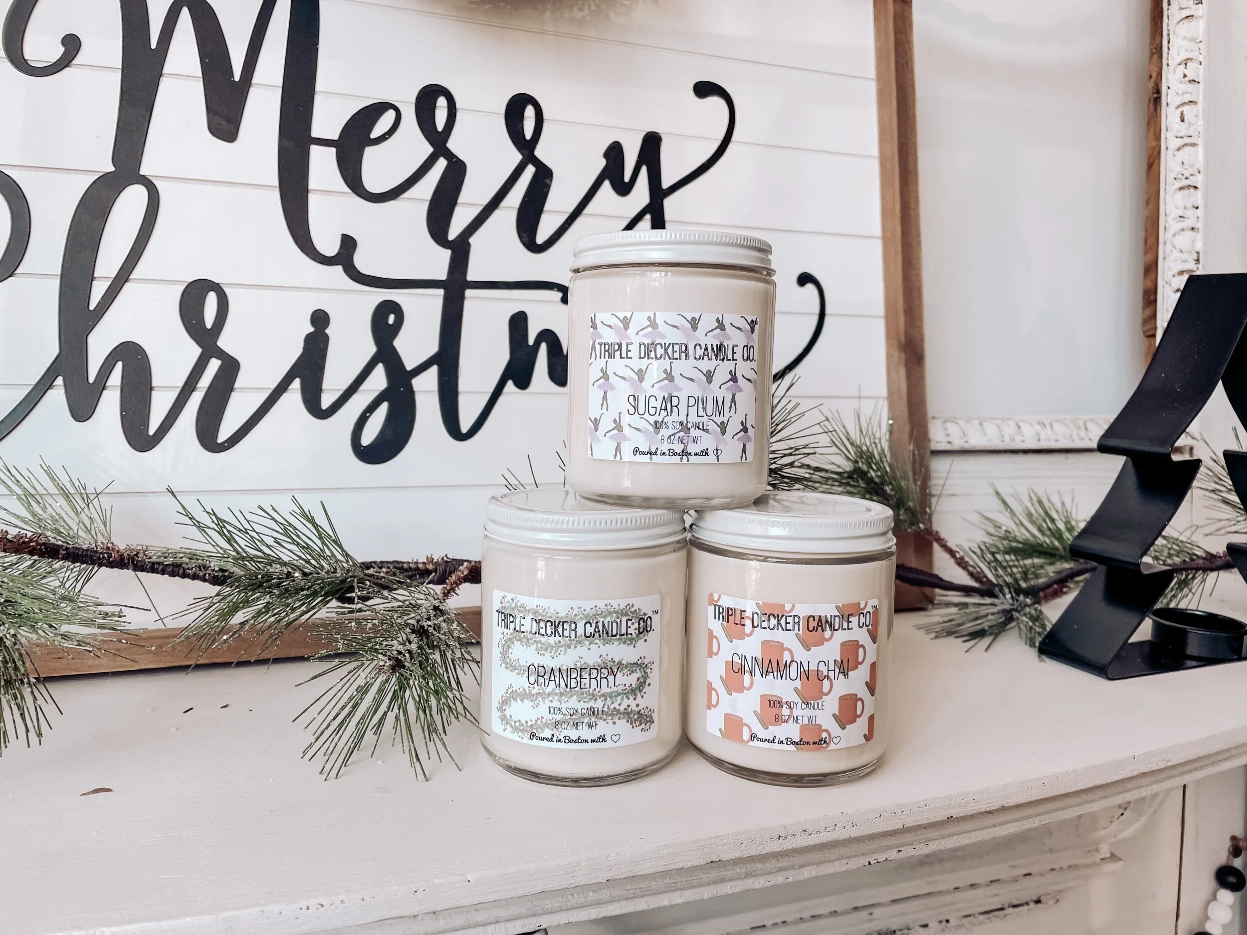 It’s the most wonderful time of the year! Shop our 2025 holiday season candles. Available in 8 oz jars with white metal lids. Beautiful label artwork by artist Kaitlyn Burdick. Some scents available in 16 oz and 4 oz.